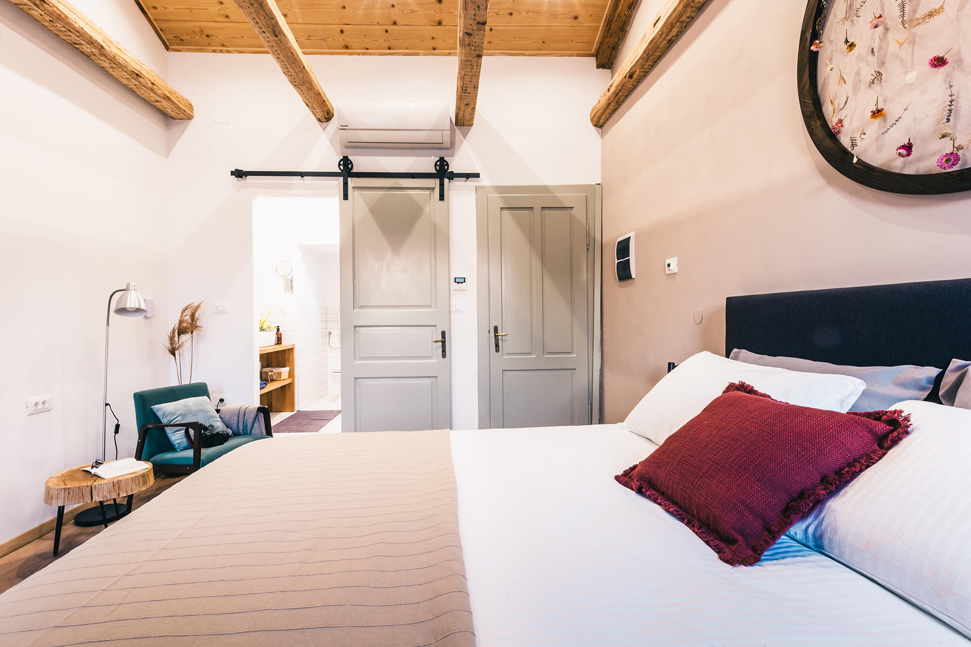 A cosy and bright double room with original wooden ceiling beam. A glass door is leading out to a courtyard […]